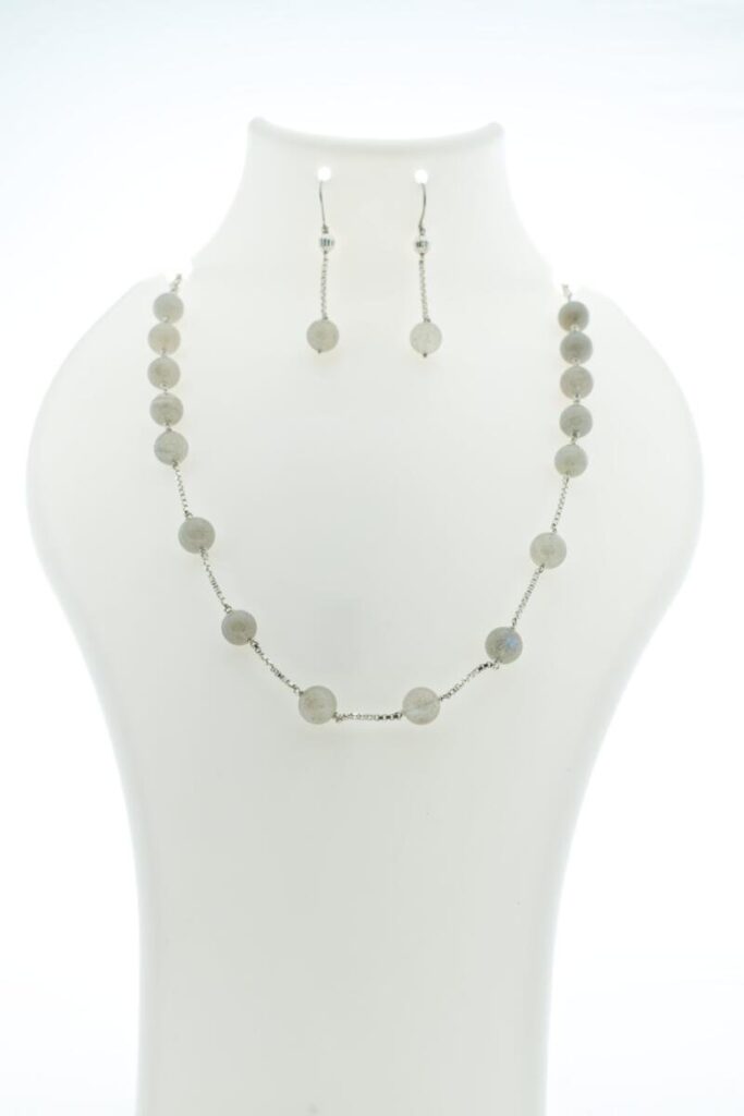 Moonlit Balance: White Quartz & Labradorite Bead Bracelet