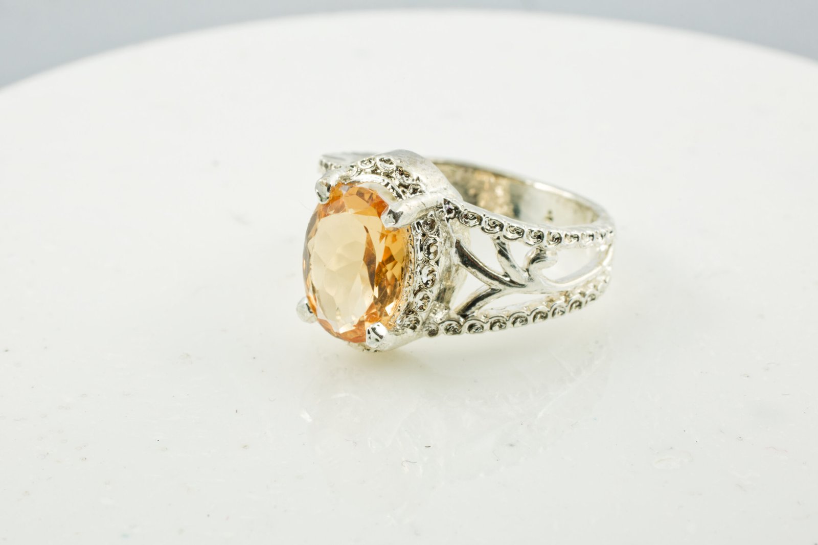 A Majestic Handmade Pure Silver Ring Studded with a Superior quality Citrine Gemstone
