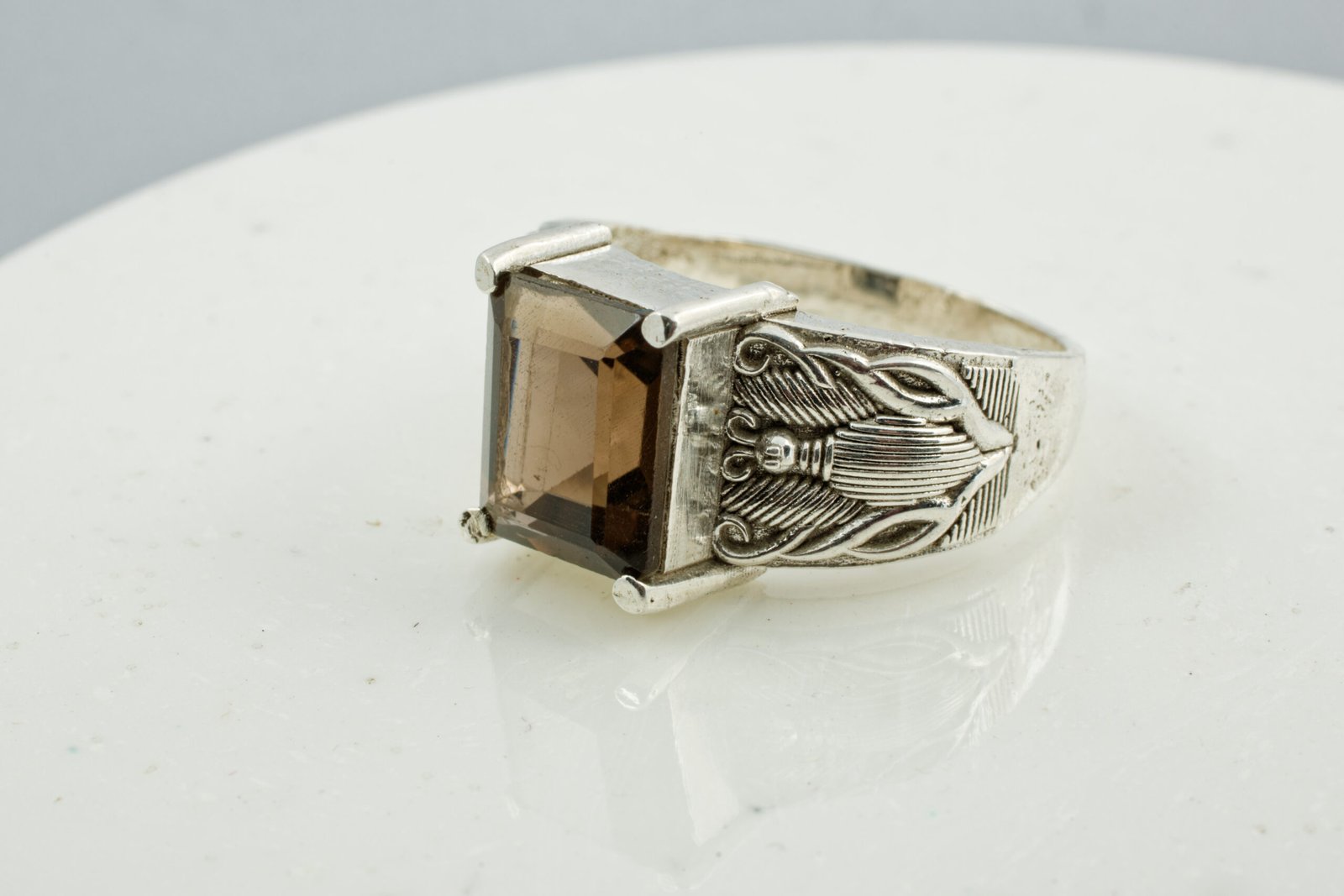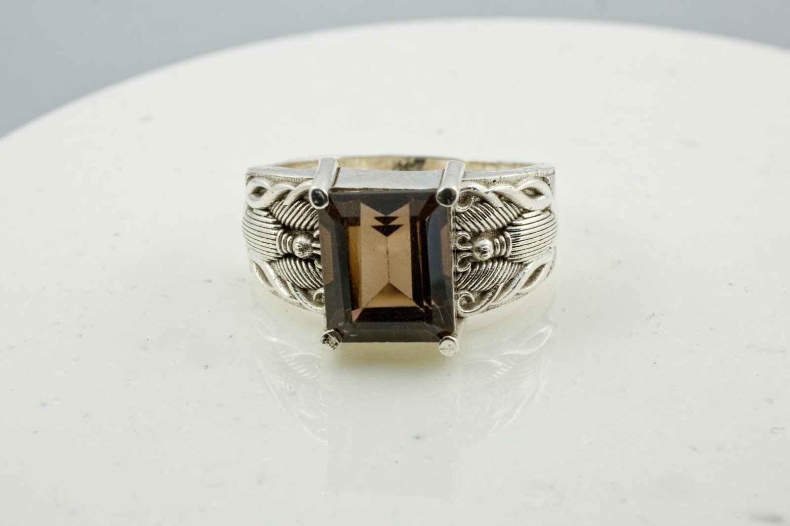 A Royal Handmade Silver Ring Studded with a Smoky Quartz Gemstone with Super-Saturated hue